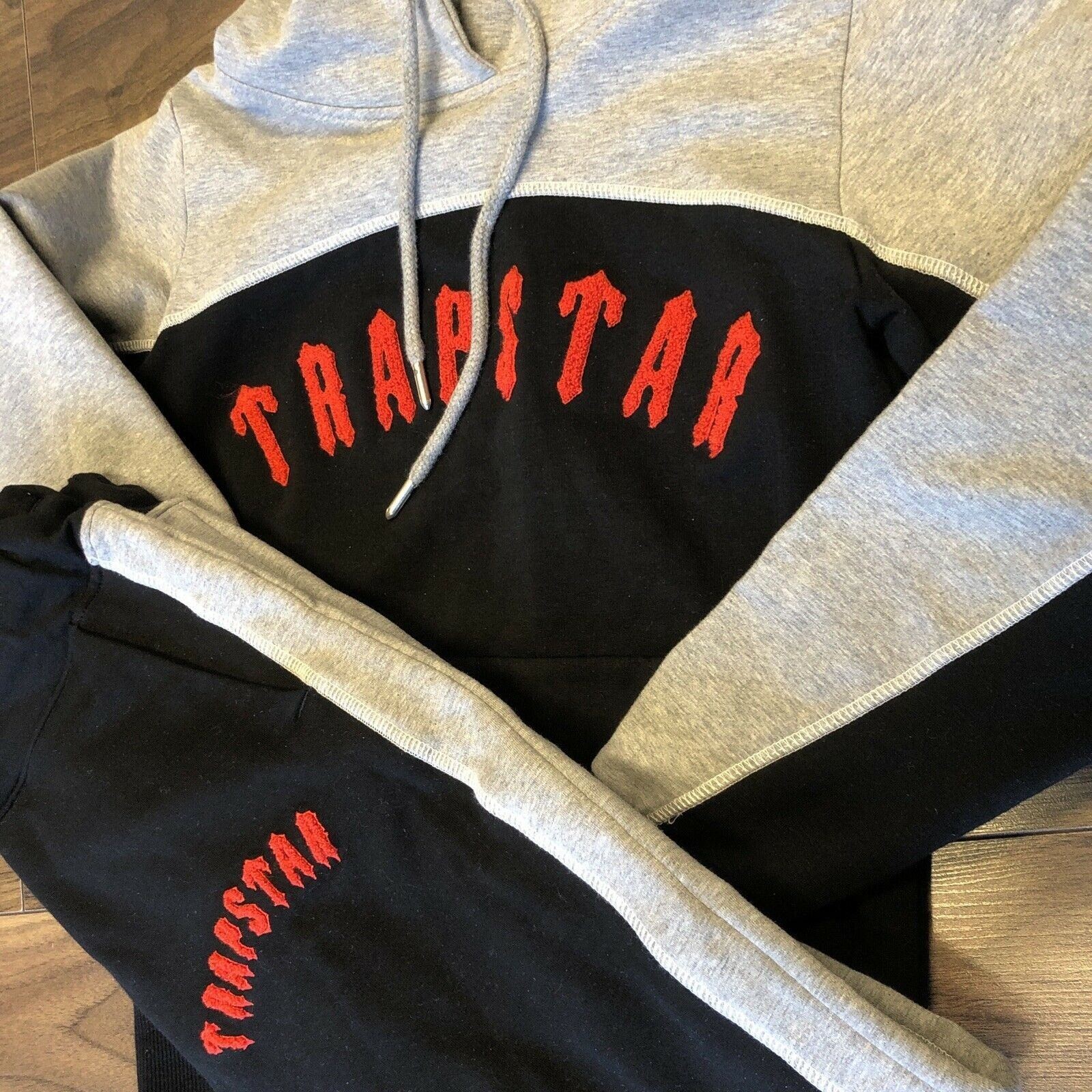 High quality custom trapstar chenille embroidery hooded tracksuit black/orange hoodie set tracksuits sweat suit men's sets