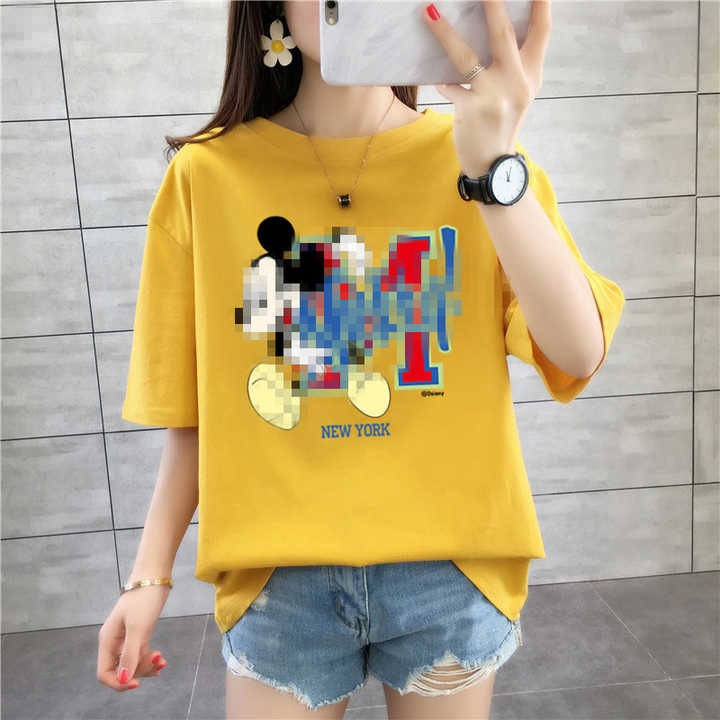 New summer 2020 loose-fitting T-shirts short sleeves O- neck solid-color casual fashion cartoon print women T-shirts